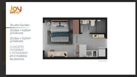 jantar. Os apartamentos possuem uma área privativa de 19,14 m² a 34,80 m²