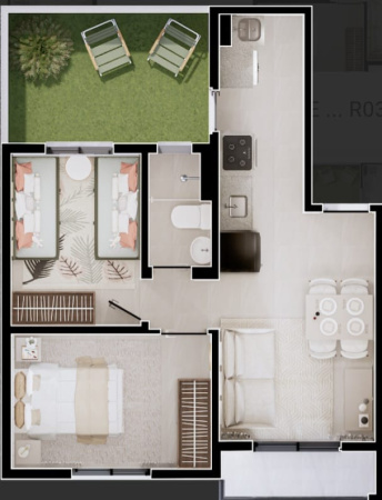 Composto por 176 unidades de 02 quartos (43,72m² e 44,76m²): 02 dormitórios, banheiro.