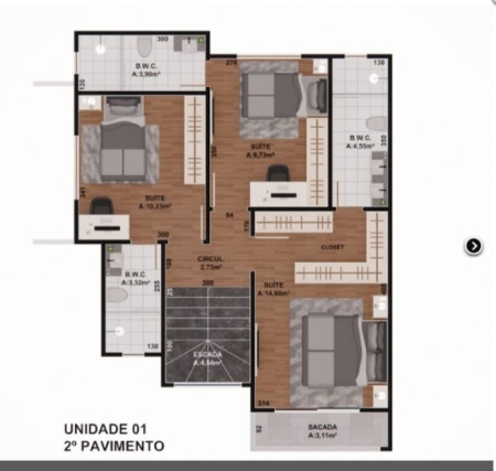 UNIDADE 01 ⁃ Área total = 133,51m²