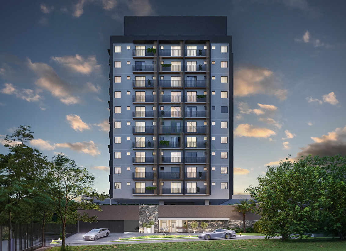 Com planta inteligente, o espaço integra quarto, sala e cozinha de forma harmoniosa, além de contar com banheiro completo. Uma solução compacta sem abrir mão do conforto.